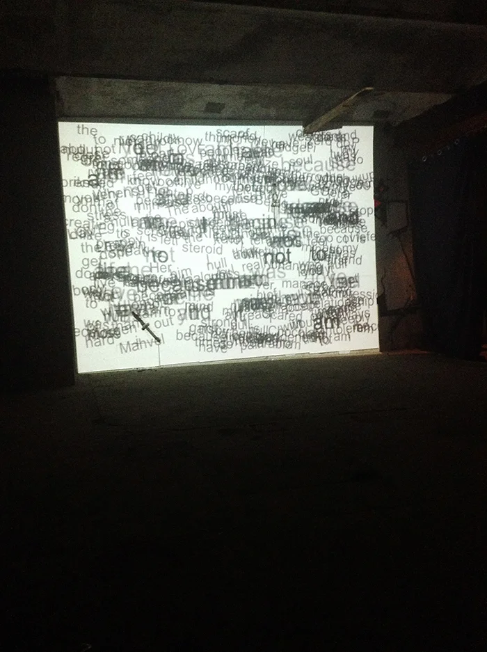 Quintessence is an interactive installation which explores what happens when private feelings and social norms are blurred. It provides the viewer a literal private space—a booth—where they can explore a feeling, and then express it to the world. The viewer is encouraged to input a feeling they might not share with someone they don’t know very well. The sentence is then broken into it’s individual words and displayed randomly on the projected surface after a few minutes—to completely abstract the participant from their thoughts syntactically and chronologically, so they will feel most anonymous in sharing their feelings. Over time, the words on the projected screen get larger and darker with each time they are used. The effect is a meta-meaning, where the most shared words are largest, and the viewers can see visually what feelings are most commonly expressed. Over time, more and more words fill up the projected